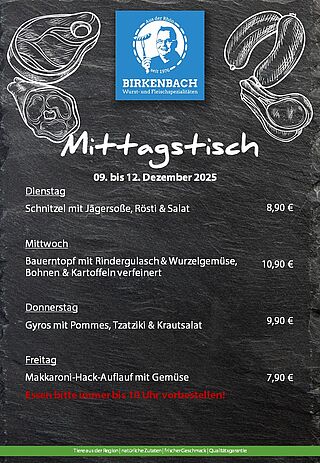 In unserem Ladengeschäft in Mittelkalbach haben wir Woche für Woche leckere Angebote für Sie. Bei uns erhalten Sie auch frische, warme Mittagsmenüs. Bitte das Essen immer bis 10 Uhr vorbestellen. da wir sonst nur eine bestimmte Anzahl an Menüs vorhalten können!